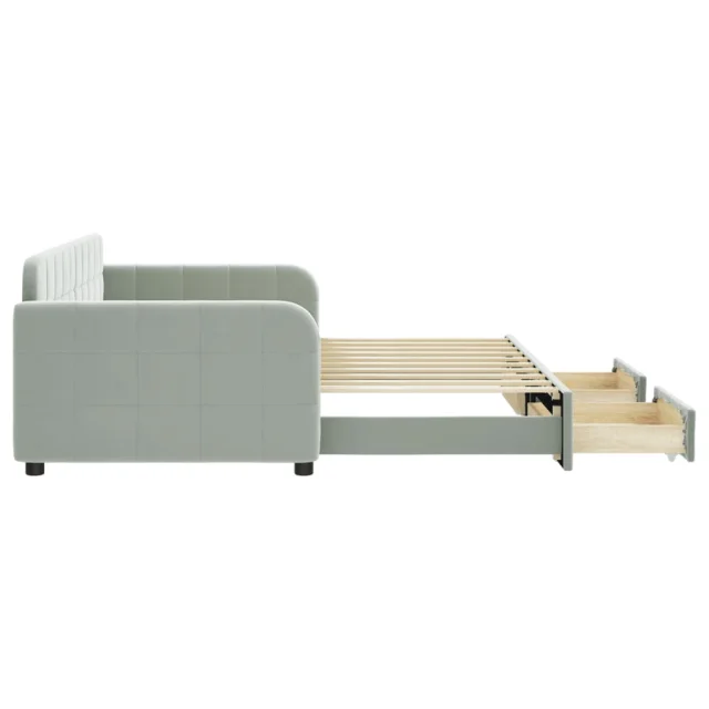 vidaXL Izvlečna dnevna postelja s predali svetlo siva 90x190 cm žamet