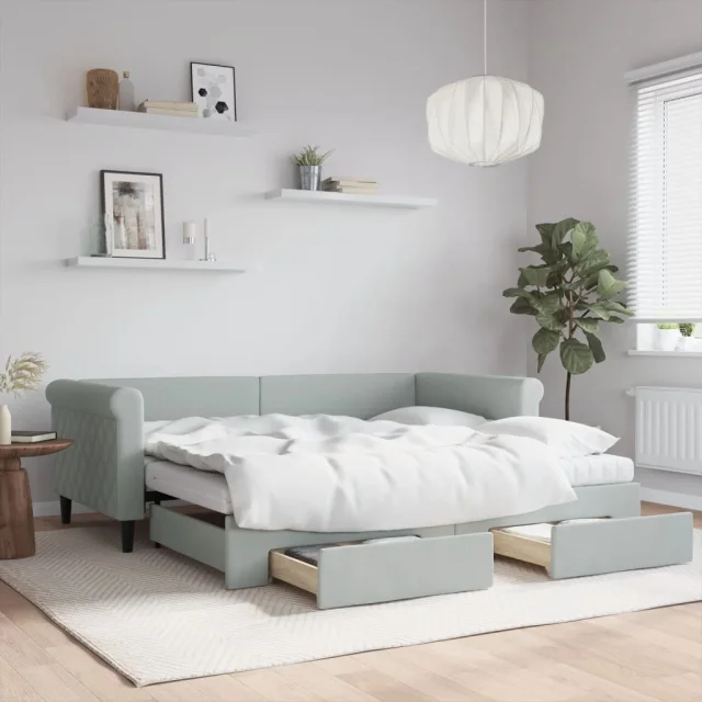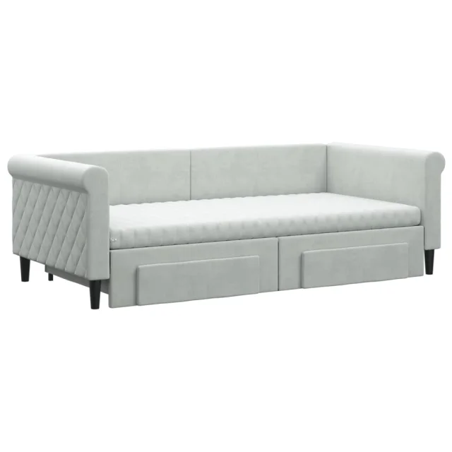 vidaXL Izvlečna dnevna postelja s predali svetlo siva 90x190 cm žamet