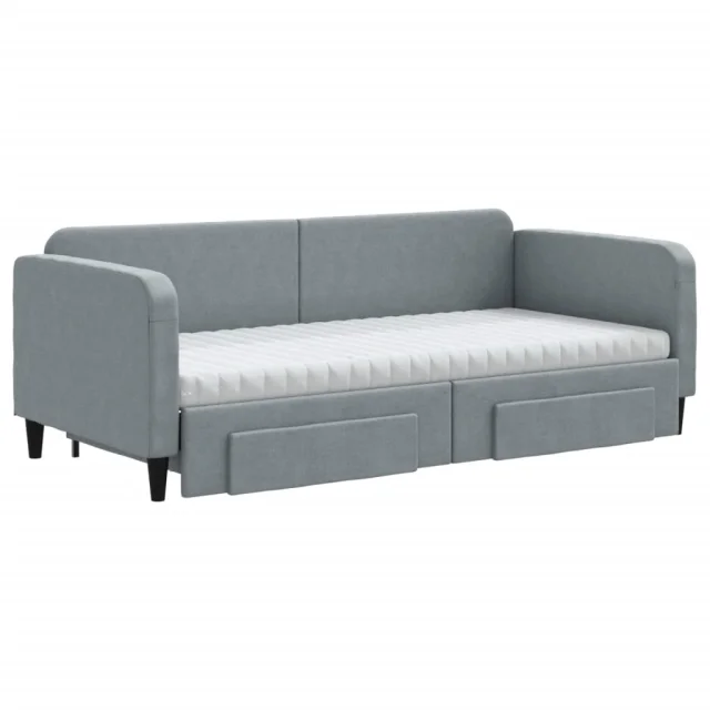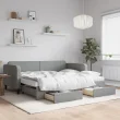 vidaXL Izvlečna dnevna postelja s predali svetlo siva 90x200 cm blago