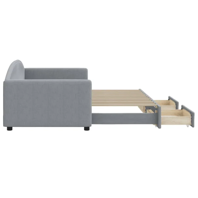 vidaXL Izvlečna dnevna postelja s predali svetlo siva 90x200 cm blago