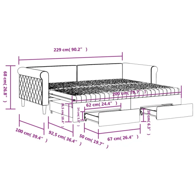 Ta 2 v 1 izvlečna dnevna postelja, ki služi kot kavč in postelja, je praktičen in privlačen dodatek za vašo dnevno sobo ali spalnico.