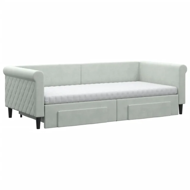 vidaXL Izvlečna dnevna postelja s predali svetlo siva 90x200 cm žamet