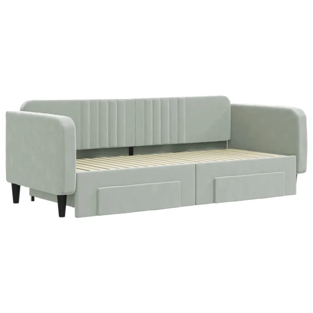 vidaXL Izvlečna dnevna postelja s predali svetlo siva 90x200 cm žamet
