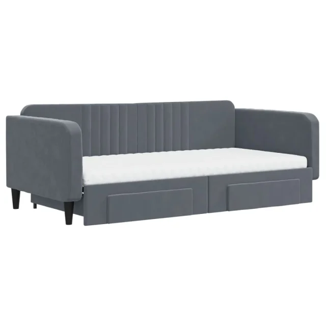 vidaXL Izvlečna dnevna postelja s predali temno siva 100x200 cm žamet