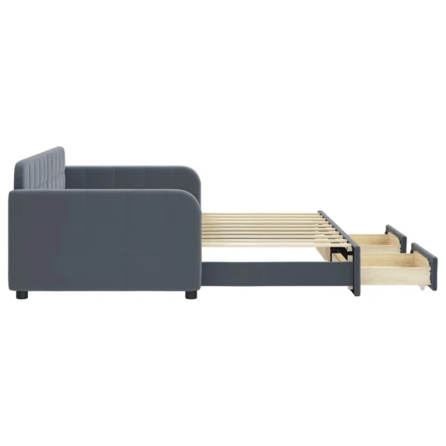 vidaXL Izvlečna dnevna postelja s predali temno siva 90x190 cm žamet