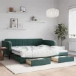 vidaXL Izvlečna dnevna postelja s predali tm. zelena 100x200 cm žamet
