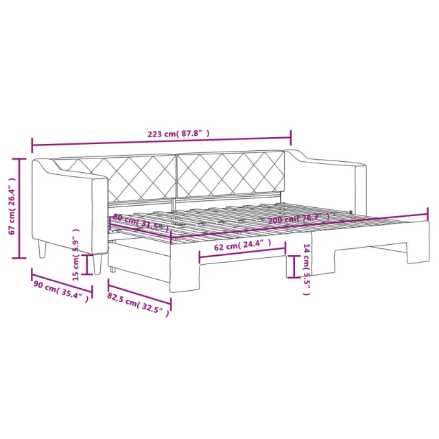 Ta 2 v 1 izvlečna dnevna postelja, ki služi kot kavč in postelja, je praktičen in privlačen dodatek za vašo dnevno sobo ali spalnico.