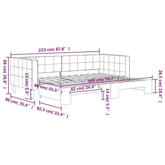 vidaXL Izvlečna dnevna postelja svetlo siva 80x200 cm žamet