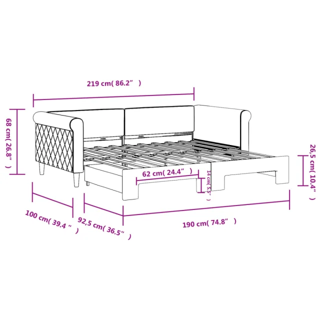 Ta 2 v 1 izvlečna dnevna postelja, ki služi kot kavč in postelja, je praktičen in privlačen dodatek za vašo dnevno sobo ali spalnico.