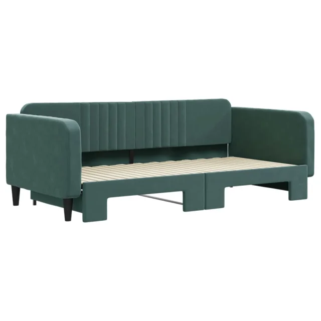 vidaXL Izvlečna dnevna postelja temno zelena 100x200 cm žamet