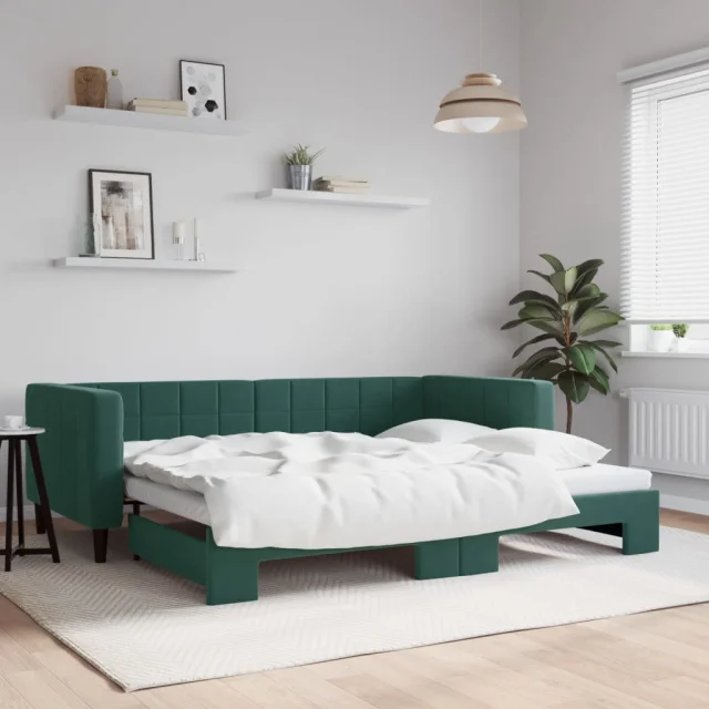 vidaXL Izvlečna dnevna postelja temno zelena 90x200 cm žamet
