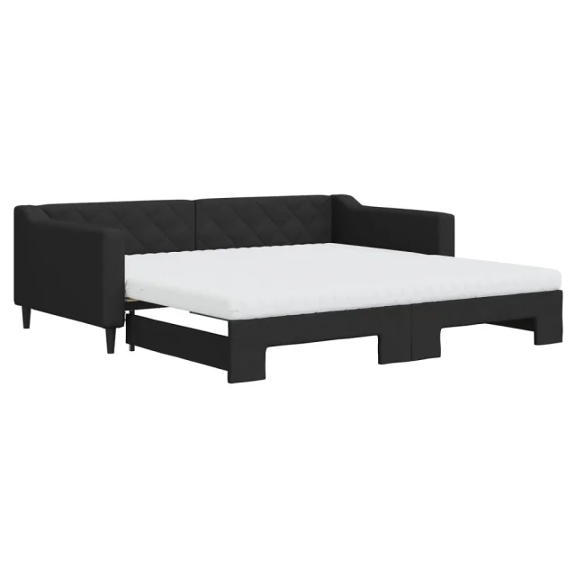 vidaXL Izvlečna dnevna postelja z vzmetnicami črna 100x200 cm blago