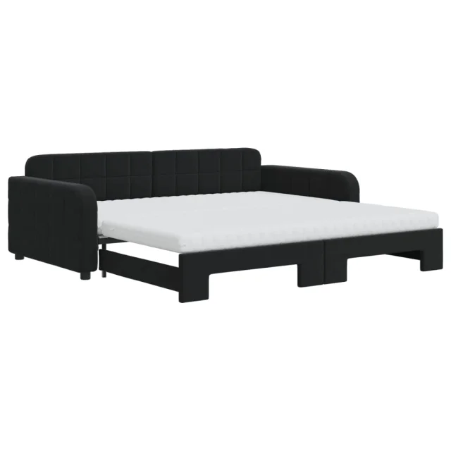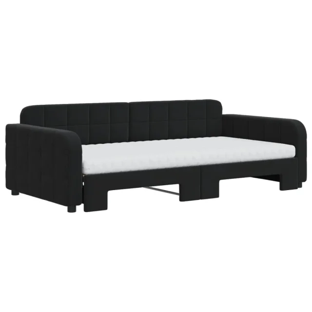 vidaXL Izvlečna dnevna postelja z vzmetnicami črna 100x200 cm žamet
