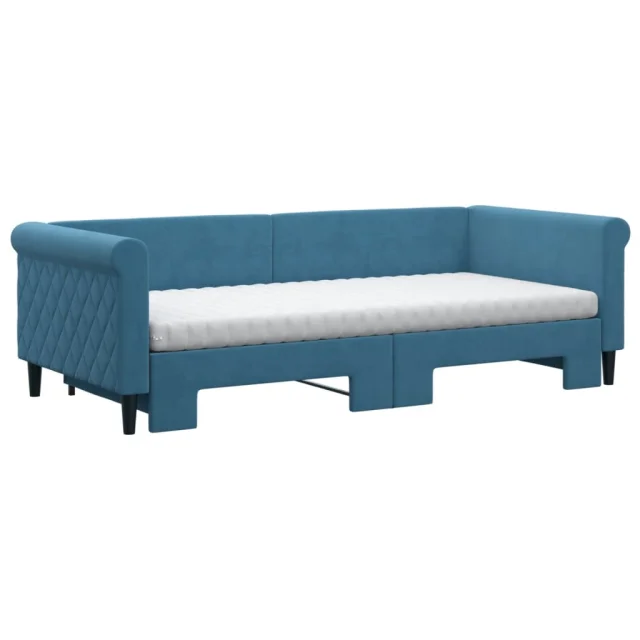 vidaXL Izvlečna dnevna postelja z vzmetnicami modra 90x200 cm žamet