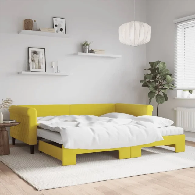 vidaXL Izvlečna dnevna postelja z vzmetnicami rumena 100x200 cm žamet
