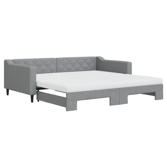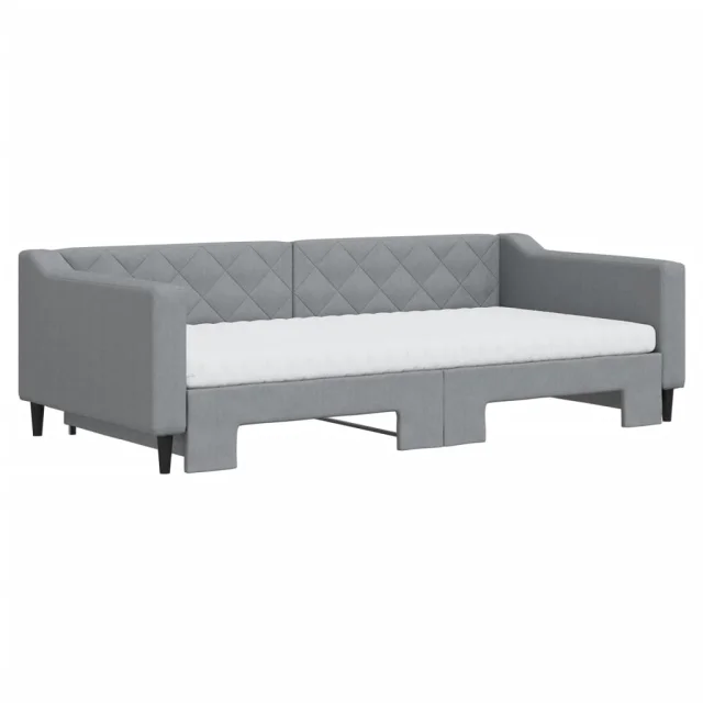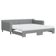 vidaXL Izvlečna dnevna postelja z vzmetnicami siva 100x200 cm blago