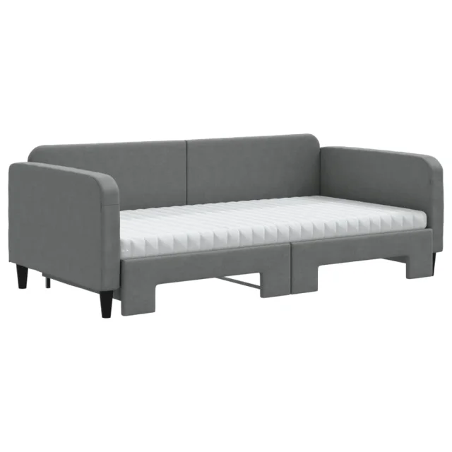 vidaXL Izvlečna dnevna postelja z vzmetnicami siva 100x200 cm blago