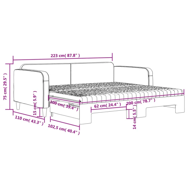 Ta 2 v 1 izvlečna dnevna postelja, ki služi kot kavč in postelja, je praktičen in privlačen dodatek za vašo dnevno sobo ali spalnico.