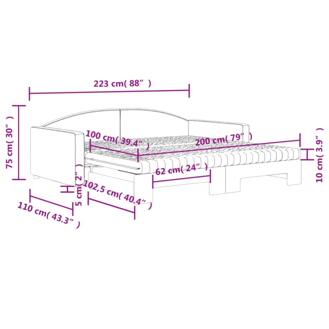 • Dimenzije (neraztegnjena): 223 x 110 x 75 cm (Š x G x V)