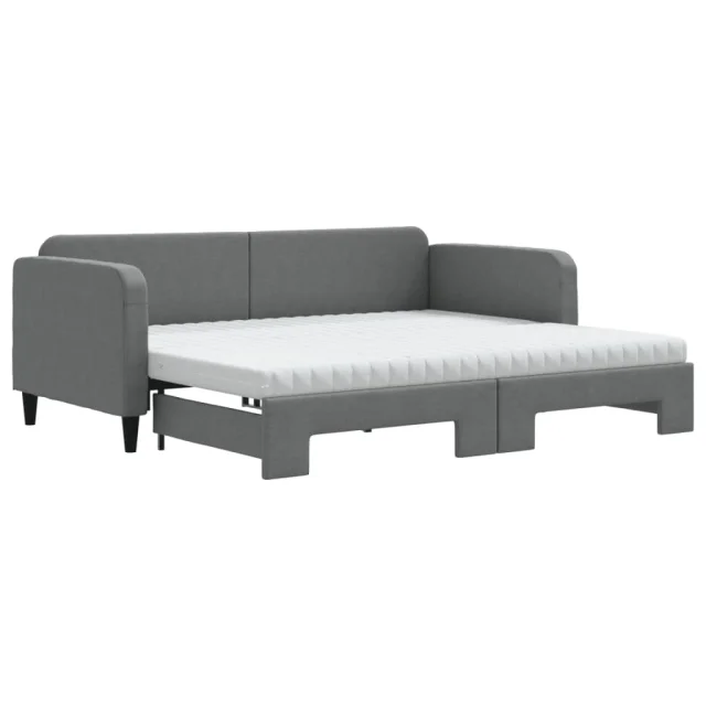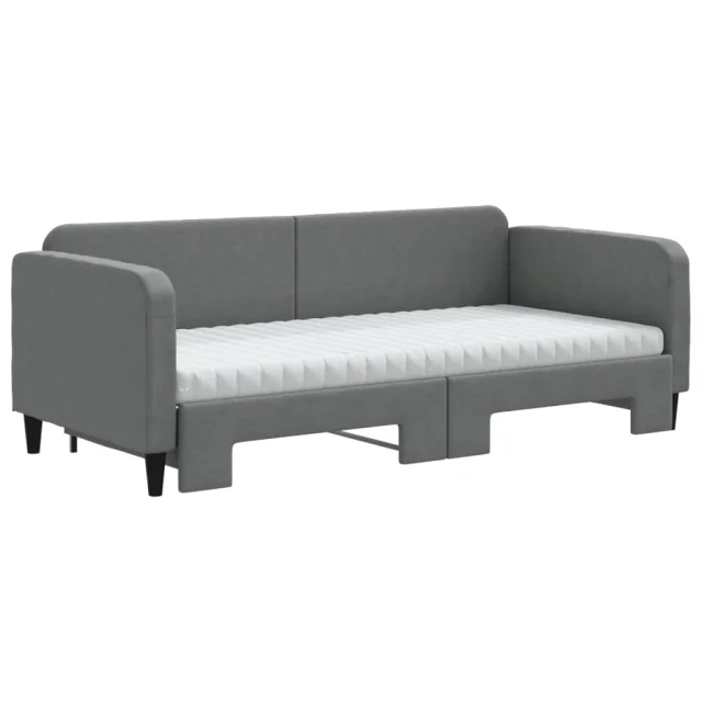 vidaXL Izvlečna dnevna postelja z vzmetnicami tm. siva 90x200 cm blago