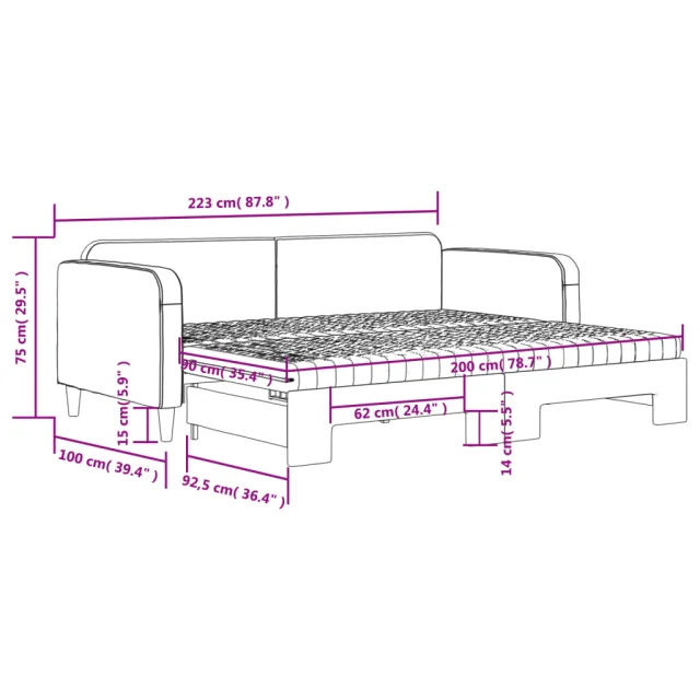 Ta 2 v 1 izvlečna dnevna postelja, ki služi kot kavč in postelja, je praktičen in privlačen dodatek za vašo dnevno sobo ali spalnico.