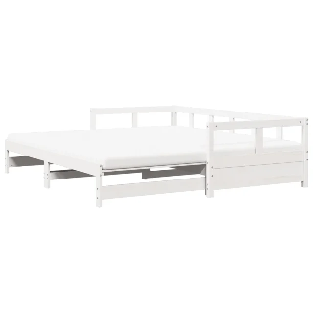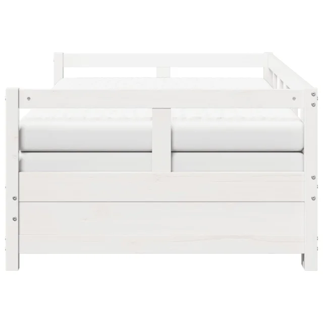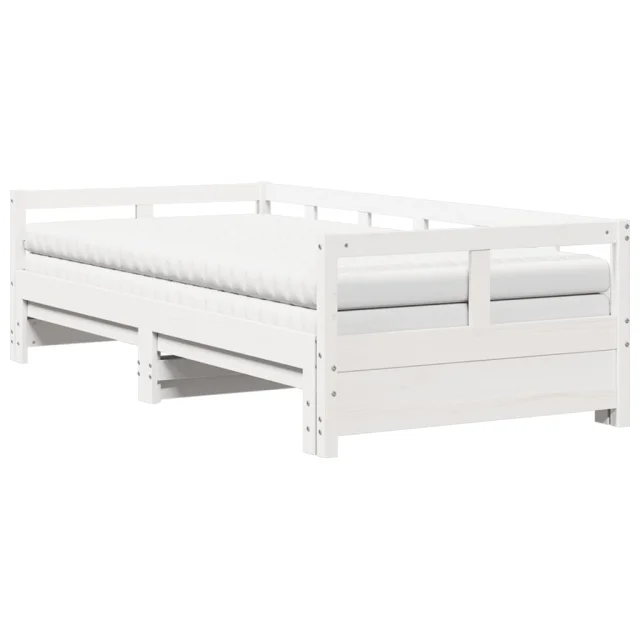 vidaXL Izvlečna dnevna postelja z vzmetnico bela 90x190 cm borovina