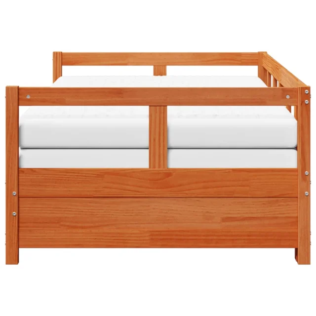 vidaXL Izvlečna dnevna postelja z vzmetnico rjava 90x190 cm borovina
