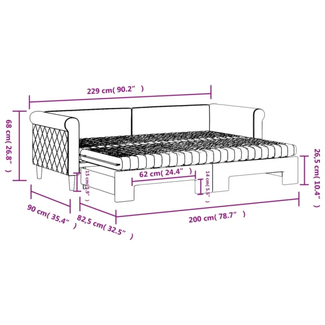 Ta 2 v 1 izvlečna dnevna postelja, ki služi kot kavč in postelja, je praktičen in privlačen dodatek za vašo dnevno sobo ali spalnico.