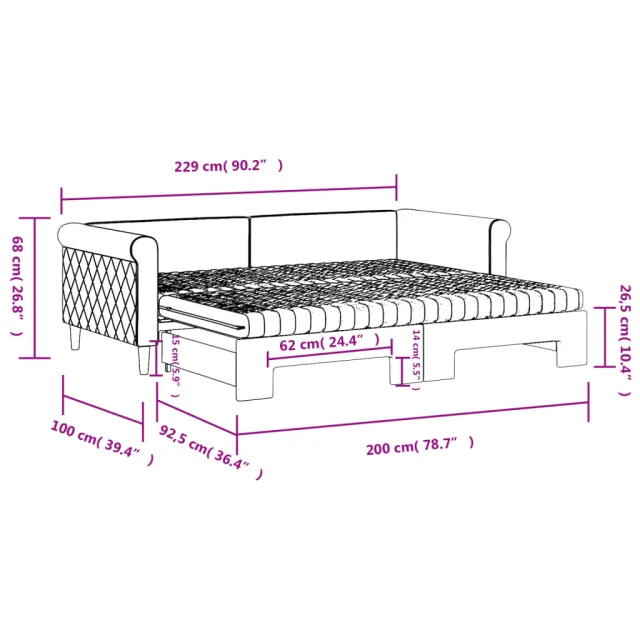 Ta 2 v 1 izvlečna dnevna postelja, ki služi kot kavč in postelja, je praktičen in privlačen dodatek za vašo dnevno sobo ali spalnico.