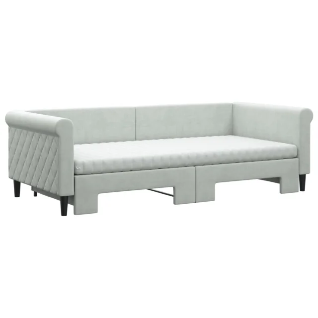 vidaXL Izvlečna dnevna postelja z vzmetnico sv. siva 90x200 cm blago