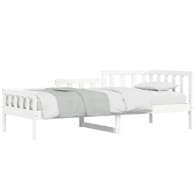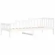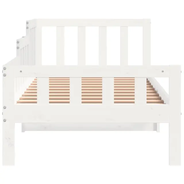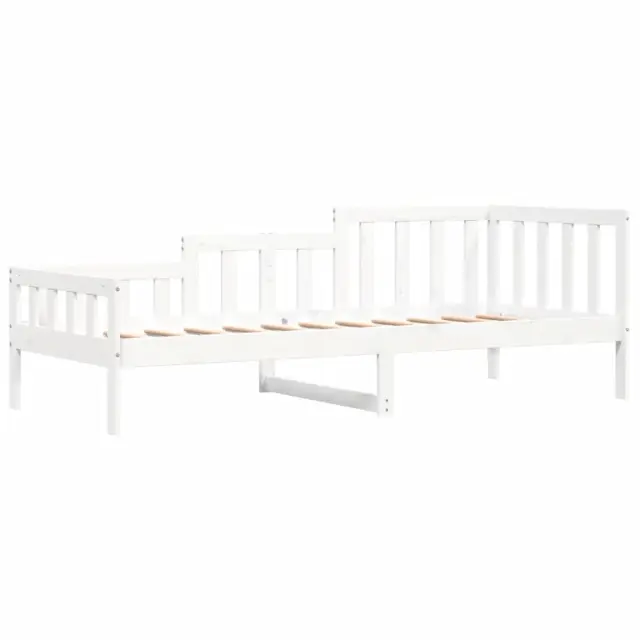 To vsestransko leseno dnevno posteljo lahko uporabljate kot posteljo v spalnici ali pa kot kavč v dnevni sobi. Zadovoljila bo vse vaše potrebe in vam zagotovita dovolj prostora za spanje ter počitek. Trdna borovina: Trdna borovina je čudovit naravni material. Borovina ima ravne vzorce, grče pa dajejo materialu njegov značilen, rustikalen videz. Postelja za goste je izdelana iz trdne borovine, zato je bolj stabilna in trpežna.3-stranska posteljna ograja: Stranice dnevne postelje se ponašajo z edinstvenim dizajnom, ki zagotavlja občutek varnosti in hkrati vašemu domu doda pridih prefinjenosti.Letven dizajn: Leseno letveno dno omogoča boljše kroženje zraka, zato bo vzmetnica dlje časa ostala sveža, ter izboljšuje nosilnost postelje in zagotavlja stabilnost.Večnamenska dnevna postelja: Ta lesena dnevna postelja se lahko uporablja kot kavč podnevi ali kot postelja ponoči ter ponuja hitro rešitev za goste, ki bodo prenočili.Dodaten prostor za shranjevanje: Prostor pod posteljo izkoristite za shranjevanje različnih stvari. To je popolno mesto za shranjevanje škatel z oblačili, igračami ali prešitimi odejami. Dobro je vedeti:Vzmetnica ni priložena tej postelji. Ponujamo različno izbiro ležišč. V naši trgovini si lahko ogledate ustrezne vzmetnice.Barva: BelaMaterial: Trdna borovina Celotne dimenzije: 203,5 x 98 x 68,5 cm (D x Š x V)Velikost primerne vzmetnice: 90 x 200 cm (Š x D) (vzmetnica ni priložena)Potrebno sestavljanje: Da 840371