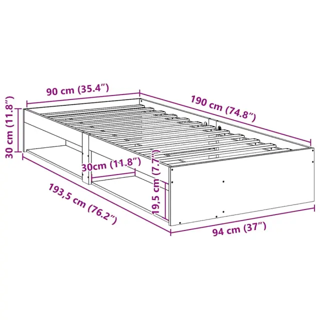 Ta elegantna dnevna postelja zagotavlja udoben prostor za počitek in praktičen prostor za shranjevanje, zato je odličen dodatek k vsaki spalnici ali dnevnemu prostoru. Stabilen in dolgotrajen okvir: Trdna borovina je znana po svoji trdnosti in trajnosti. Ravni vzorci in značilni vozli prispevajo k njenemu rustikalnemu čaru.Vzmetna škatla ni potrebna: Okvir postelje ima letveno podlago, ki zagotavlja odlično oporo in zračnost za ležišče, zato ni potrebna vzmetnica.Večnamenska dnevna postelja: Ta lesena dnevna postelja se lahko uporablja kot kavč podnevi ali kot postelja ponoči ter ponuja hitro rešitev za goste, ki bodo prenočili.Veliko prostora za shranjevanje pod posteljo: Ta posteljni okvir ima prostoren prostor za shranjevanje pod posteljo, kar poveča vaš prostor brez dodatne talne površine. Zagotavlja dovolj prostora za shranjevanje predmetov, kot so dodatne odeje, vzglavniki in sezonska oblačila, zaradi česar je idealen za manjše ali bolj zaprte prostore. Dobro je vedeti:Vzmetnica ni priložena tej postelji. Ponujamo različno izbiro ležišč. V naši trgovini si lahko ogledate ustrezne vzmetnice.Barva: Voščeno rjavaMaterial posteljnega okvirja: Trdna borovinaMaterial letvic: Vezan lesDimenzije: 193,5 x 94 x 30 cm (D x Š x V)Velikost primerne vzmetnice: 90 x 190 cm (Š x D) (vzmetnica ni priložena)Maksimalna nosilnost: 100 kgPotrebno sestavljanje: Da 859249