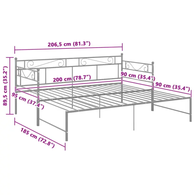 vidaXL Izvlečni posteljni okvir siv iz kovine 90x200 cm