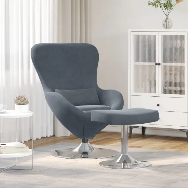 Ta moderen temno sivi naslanjač s priloženim taburejem je odlična izbira za udobje in stil v vaši dnevni sobi ali spalnici. Njegove lepe linije in mehke teksture mu dodajajo pridih sofisticiranosti, kar ga naredi odličnega za branje, sprostitev ali lenarjenje po napornem dnevu.