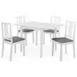Ta 5-delna jedilna garnitura v brezčasnem in trpežnem dizajnu bo v vaše notranje prostore vnesla pridih stila. Raztegljiva jedilna miza in stoli so izdelani iz trdnega kavčukovca, zato so zelo stabilni in trpežni. Zahvaljujoč edinstveni obliki lahko mizo raztegnete, ko boste potrebovali dodaten prostor. Naslonjala in blazine stolov prispevajo k udobnemu sedenju. Ta jedilna garnitura je preprosta za čiščenje z vlažno krpo. Jedilna garnitura je preprosta za sestavo. Paket vsebuje 1 raztegljivo mizo in 4 stole.Jedilna miza:Barva: BelaDimenzije: (80-120) x 80 x 74 cm (D x Š x V)Material: Trden les kavčukovca + površina mize iz mediapanaMiza se lahko raztegne od 80 do 120 cmJedilni stoli:Barva: Bela in sivaMaterial stola: Trden kavčukovecMaterial blazine: 100 % poliesterDimenzije: 40 x 49 x 88,5 cm (Š x G x V)Širina sedeža: 40 cmGlobina sedeža: 40 cmVišina sedišča, merjena od tal: 44 cmPaket vsebuje 1 jedilno mizo in 4 jedilne stole z blazinami 276396