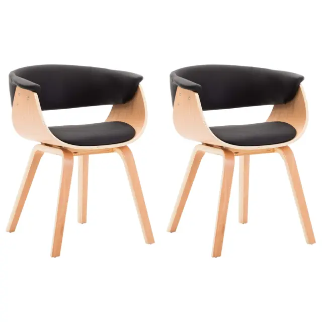 vidaXL Jedilni stoli 2 kosa ukrivljen les in črno umetno usnje