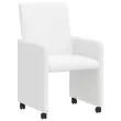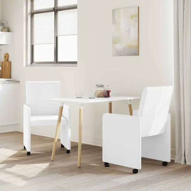 vidaXL Jedilni stoli s kolesi 2 pcs Bela 57 x 66 x 94 cm Umetna koža