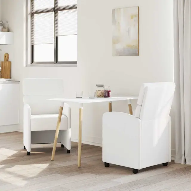 vidaXL Jedilni stoli s kolesi 2 pcs Bela 58 x 65 x 98 cm Umetna koža