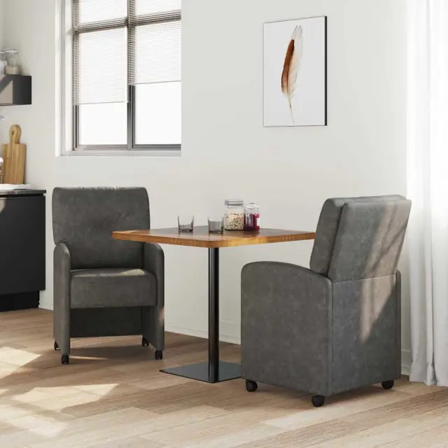 vidaXL Jedilni stoli s kolesi 2 pcs Črna 57 x 67 x 95 cm Umetna koža