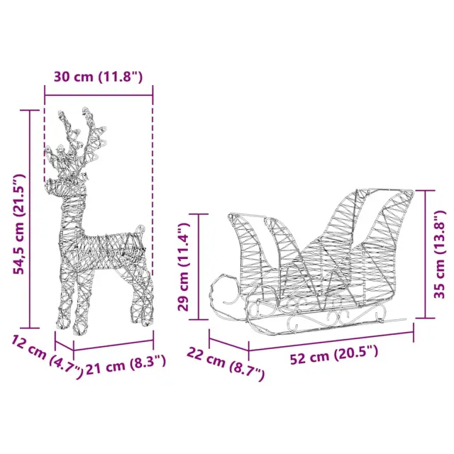 vidaXL Jelenova sani med 160 LED Toplo bela 30 x 12 x 54.5 cm PET
