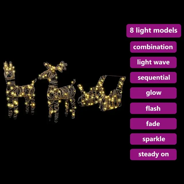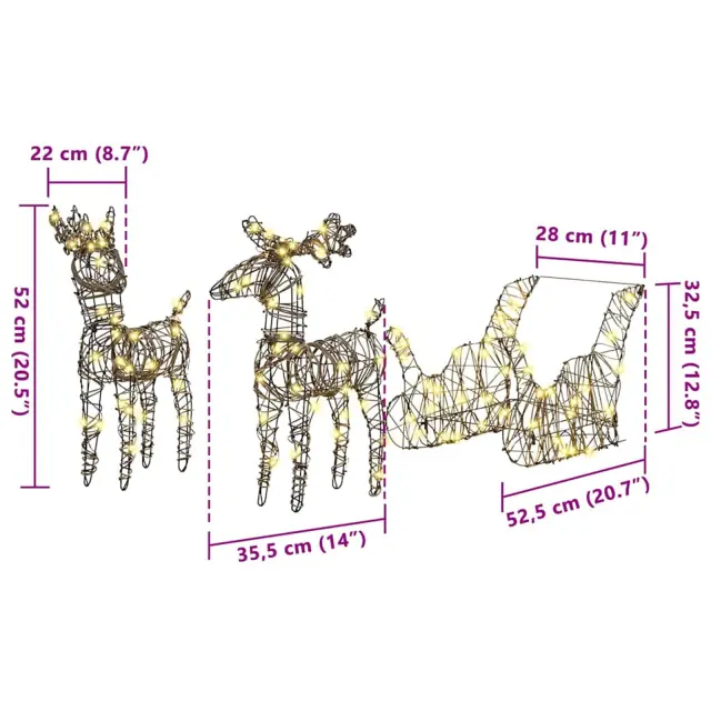 vidaXL Jelenova sani med 160 LED Toplo bela 52.5 x 28 x 32.5 cm Ratan