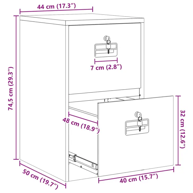 vidaXL Kabinet za datoteke s predalom s polico Črna 44 x 50 x 106.5 cm