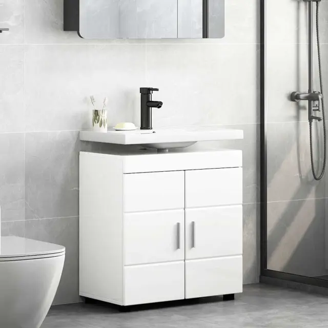 vidaXL Kabinet za umivalnik v kopalnici TULUM Bela z visokim sijajem