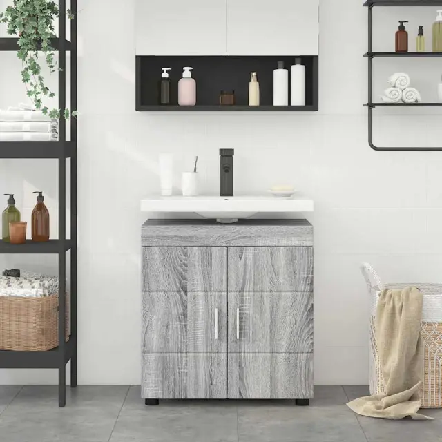 vidaXL Kabinet za umivalnik v kopalnici z vrati TULUM Siva sonoma