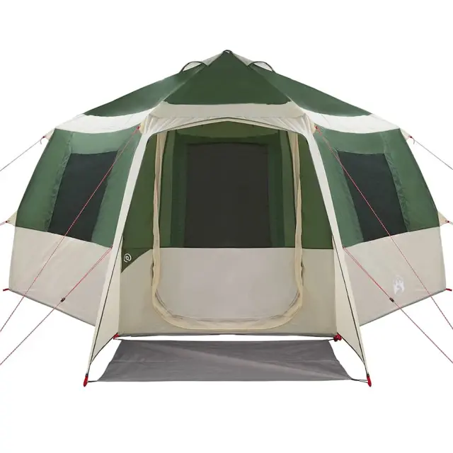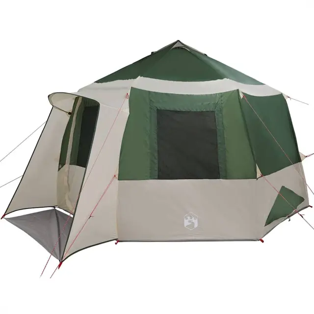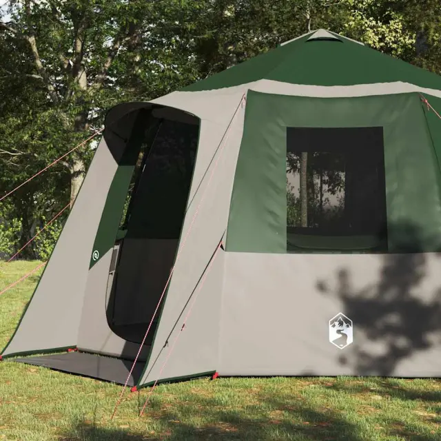 vidaXL Kabinski šotor s streho Zelena in Bela 405 x 405 x 273 cm