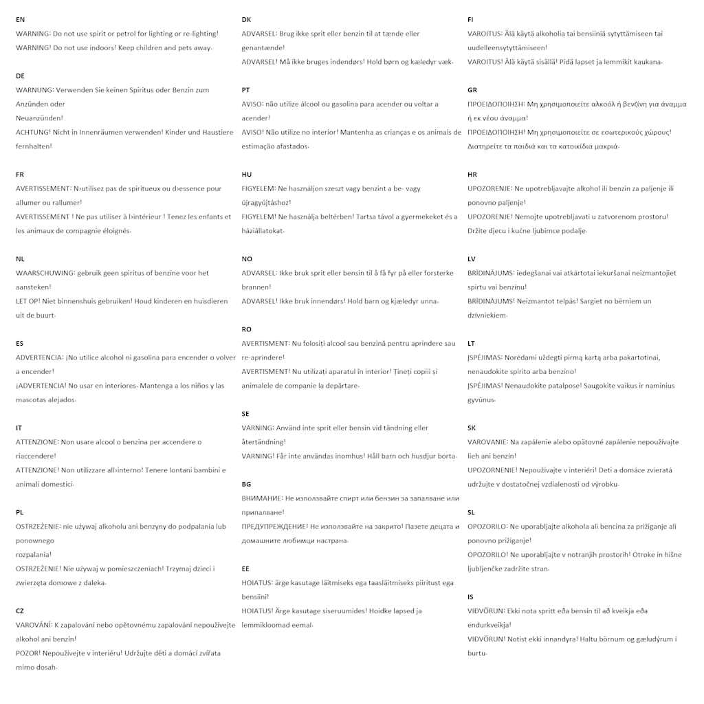 OPOZORILO: Ne uporabljajte alkohola ali bencina za prižiganje ali ponovno prižiganje! OPOZORILO! Ne uporabljajte v notranjih prostorih! Otroke in hišne ljubljenčke zadržite stran.