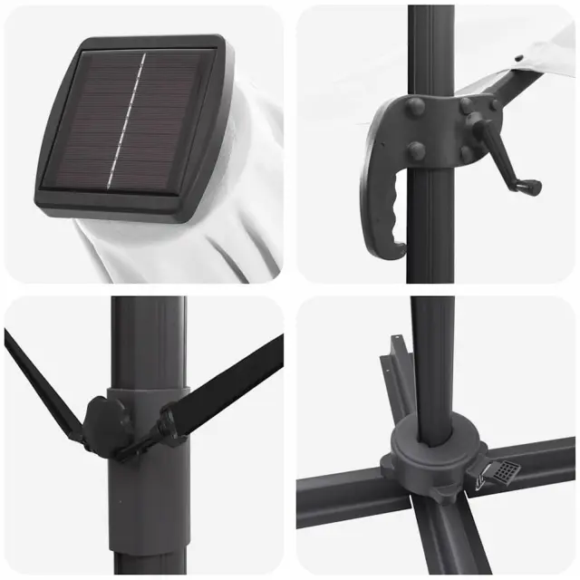 • LED luči: Senčnik ima prilagodljive LED trakove, enostavne za pritrditev, ki ustvarjajo prijetno atmosfero za nočne dogodke. Te luči mu omogočajo, da ostane uporabna do pozne noči in dodajo topel sijaj tvojim srečanjem.
