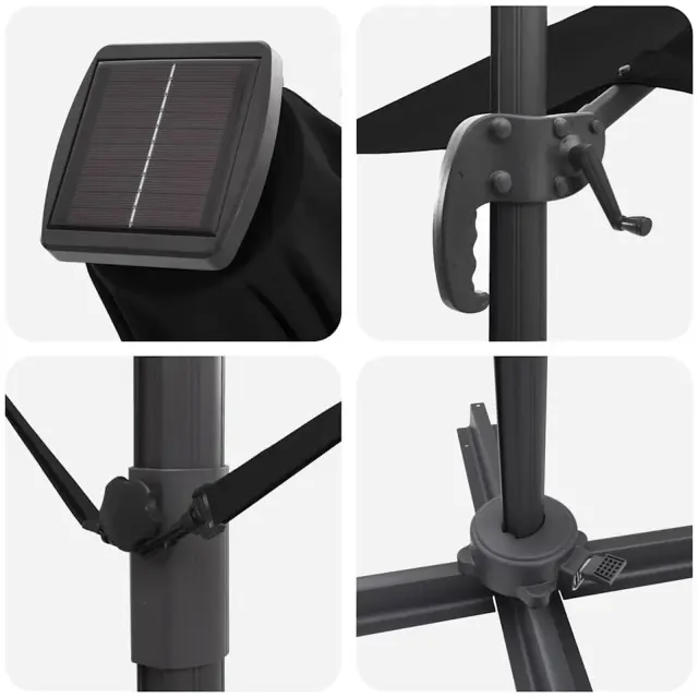 • Prilagodljivost: Z ročno vrtečo funkcijo se senčnik lahko vrti 360 stopinj. Tako lahko uživaš v senci ne glede na to, kako sije sonce, kar ohranja tvojo površino prijetno hladno.