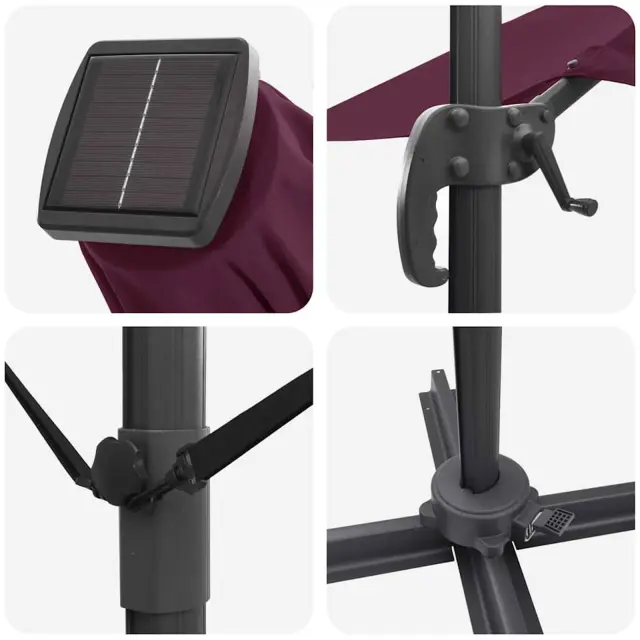 • LED luči: Senčnik ima prilagodljive LED trakove, enostavne za pritrditev, ki ustvarjajo prijetno atmosfero za nočne dogodke. Te luči mu omogočajo, da ostane uporabna do pozne noči in dodajo topel sijaj tvojim srečanjem.