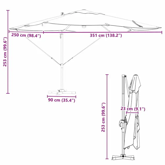 Ta prostostoječa dežnik je tvoja prva izbira za moderne zunanje prostore. Njegov eleganten dizajn, preproste linije in brez pretvarjanja, združuje praktičnost in dober stil. Idealna je za vrtove in terase. Ni samo lepa – resnično izboljša vsak zunanji prostor, ne glede na to, ali bežiš pred vročino na poletni zabavi ali uživaš na sproščenem popoldnevu. Pomembno je, da ostaneš udoben, ko se vreme segreva.